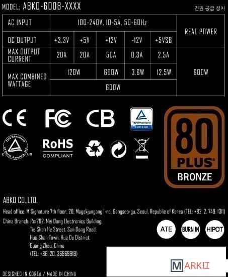 Markit » Блоки питания » Блок питания Abkoncore Tenergy TN-600 Bronze