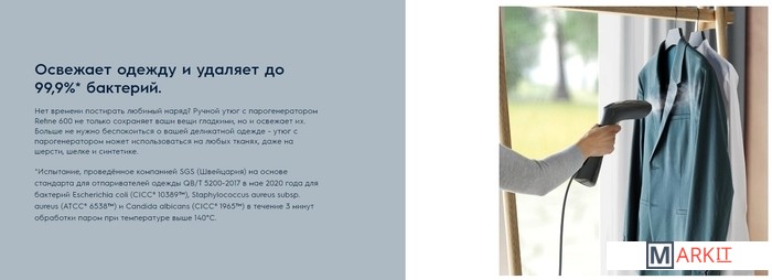Ручной утюг с парогенератором одежды Refine 600 позволяет вам отпаривать одежду прямо на вешалке. Нагреваясь всего за 20 секунд, он обеспечивает постоянный поток пара с достаточной мощностью, чтобы освежить и удалить складки с любого наряда.Чтобы максимально облегчить жизнь, ручной утюг с парогенератором Refine 600 оснащен съемным резервуаром для воды. Это означает, что вы можете просто извлечь его, подойти к ближайшему крану, чтобы наполнить водой, а затем снова установить его.Электрическая розетка слишком далеко или вам нужно добраться до поверхности расположенной слишком высоко, таких как занавески? Портативный утюг с парогенератором Refine 600 с длиной шнура 3 метра означает, что нет такой труднодоступной поверхности.Каждый ручной утюг с парогенератором Refine 600 содержит специально разработанную щетку, которая позволяет пару проникать в более плотные ткани, такие как джинсовая ткань. Плюс защитная перчатка для защиты рук от горячего пара.